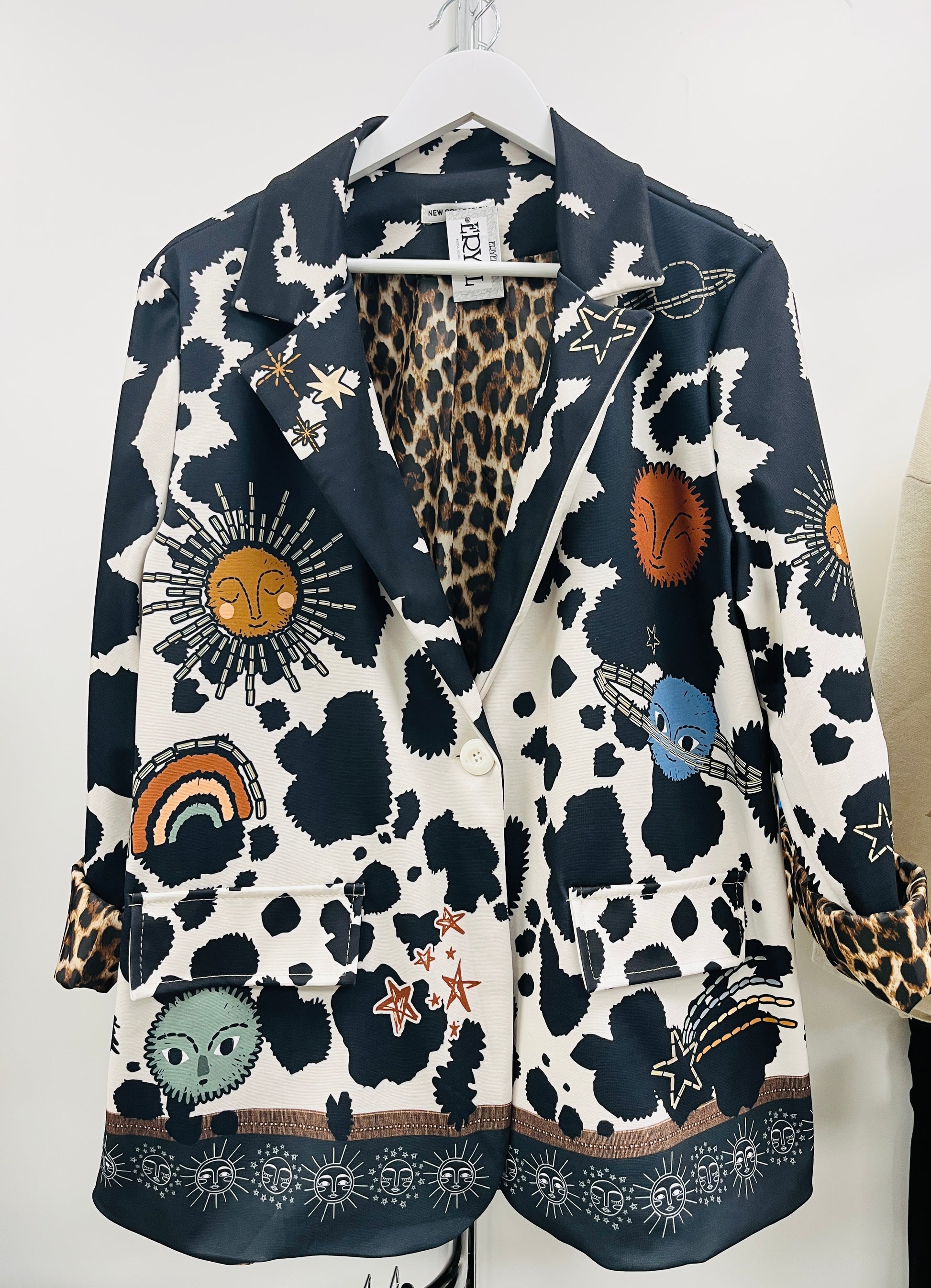 Americana con estampados. Talla única que abarca de la talla 42 a la 48.