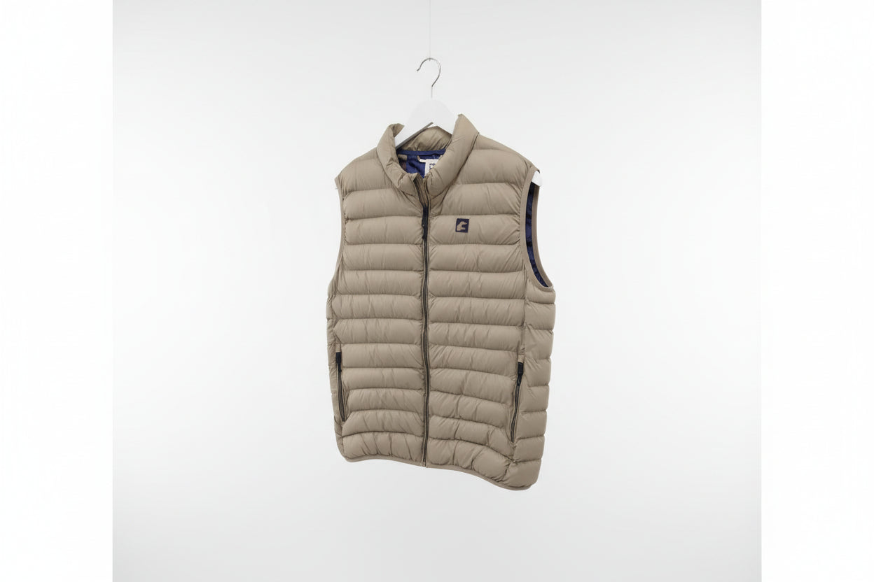 Chaleco acolchado 2GN regular fit confeccionado en tejido técnico que repele el agua al contacto. El tejido ayuda a mantenerte seco durante cortos periodos de exposición a lloviznas ligeras. Cuello subido, bolsillos cadera con cierre de cremallera. Cierre frontal con cremallera.