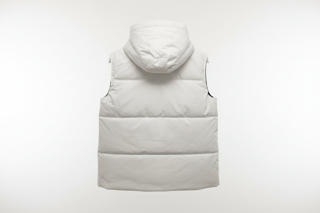 Chaleco regular fit GD cuello subido y manga sisa con capucha. Bolsillos frontales con cierre click y bolsill con cierre de cremallera en cadera. Cierre frontal con cremallera.