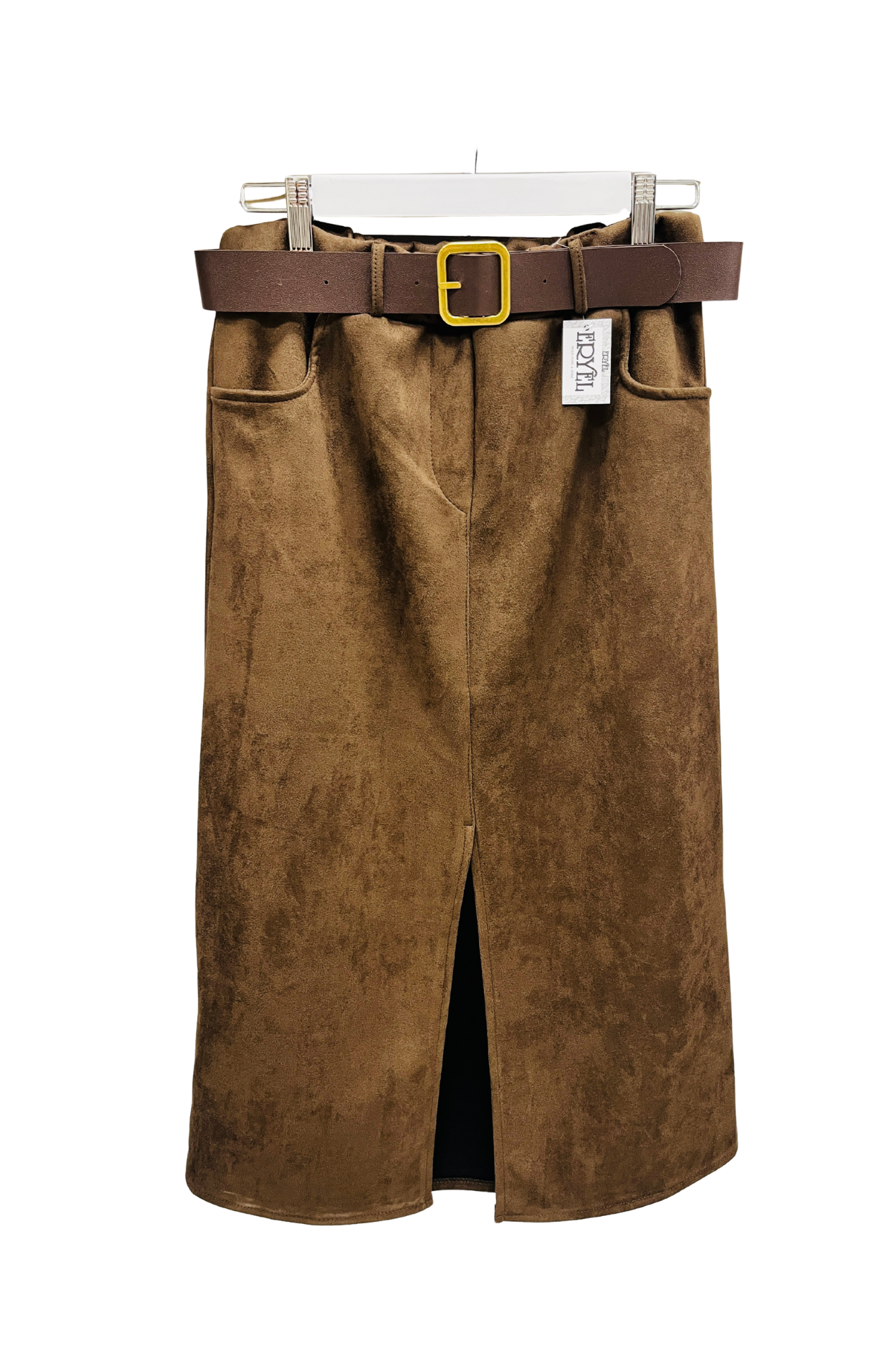 Falda en ante de color en tendencia, marrón chocolate. Talla única. Abarca de la 38 a las 42.