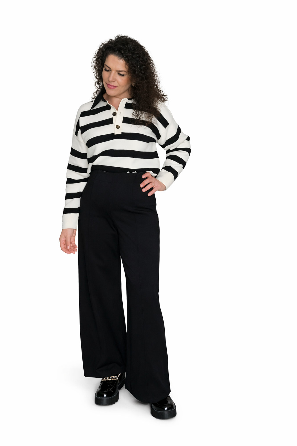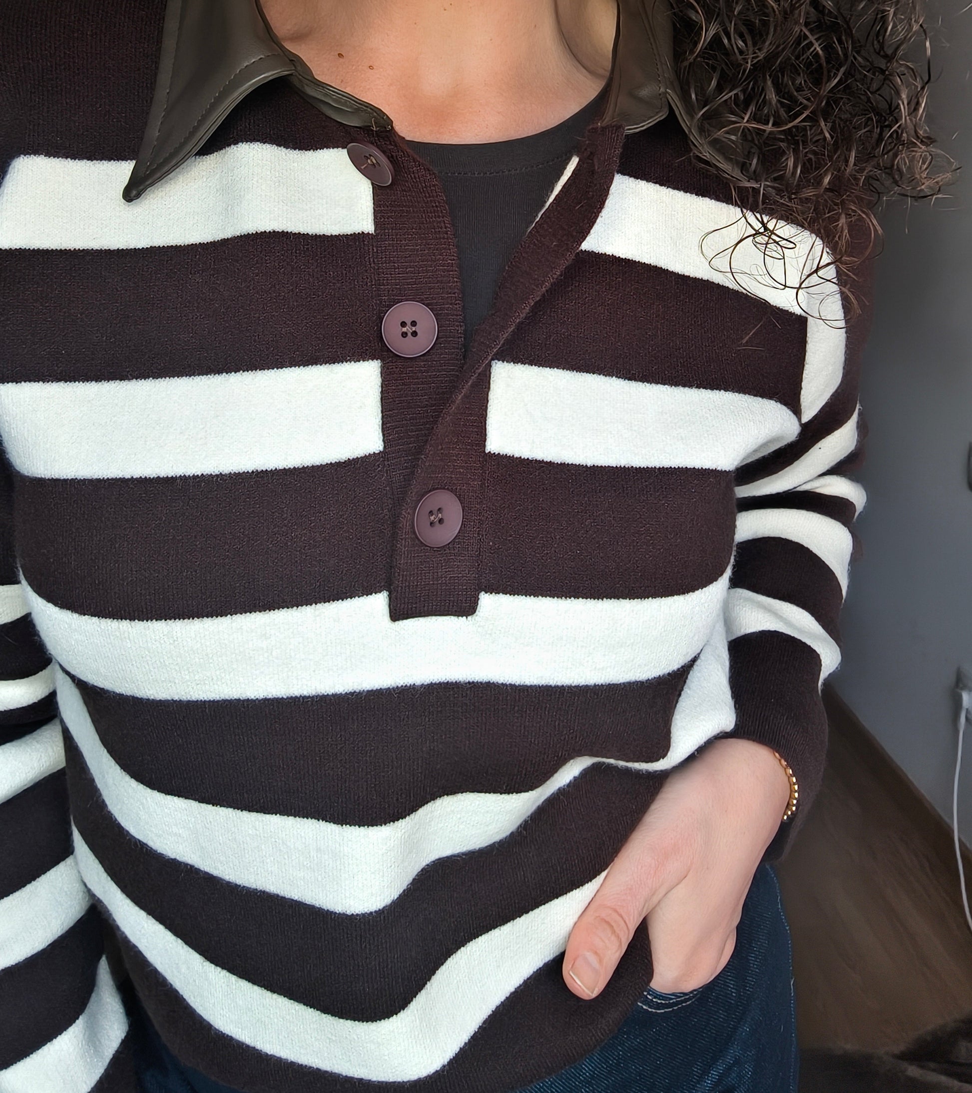 En tendencia, jersey a rayas con cuello de polo en contraste, efecto polipiel.